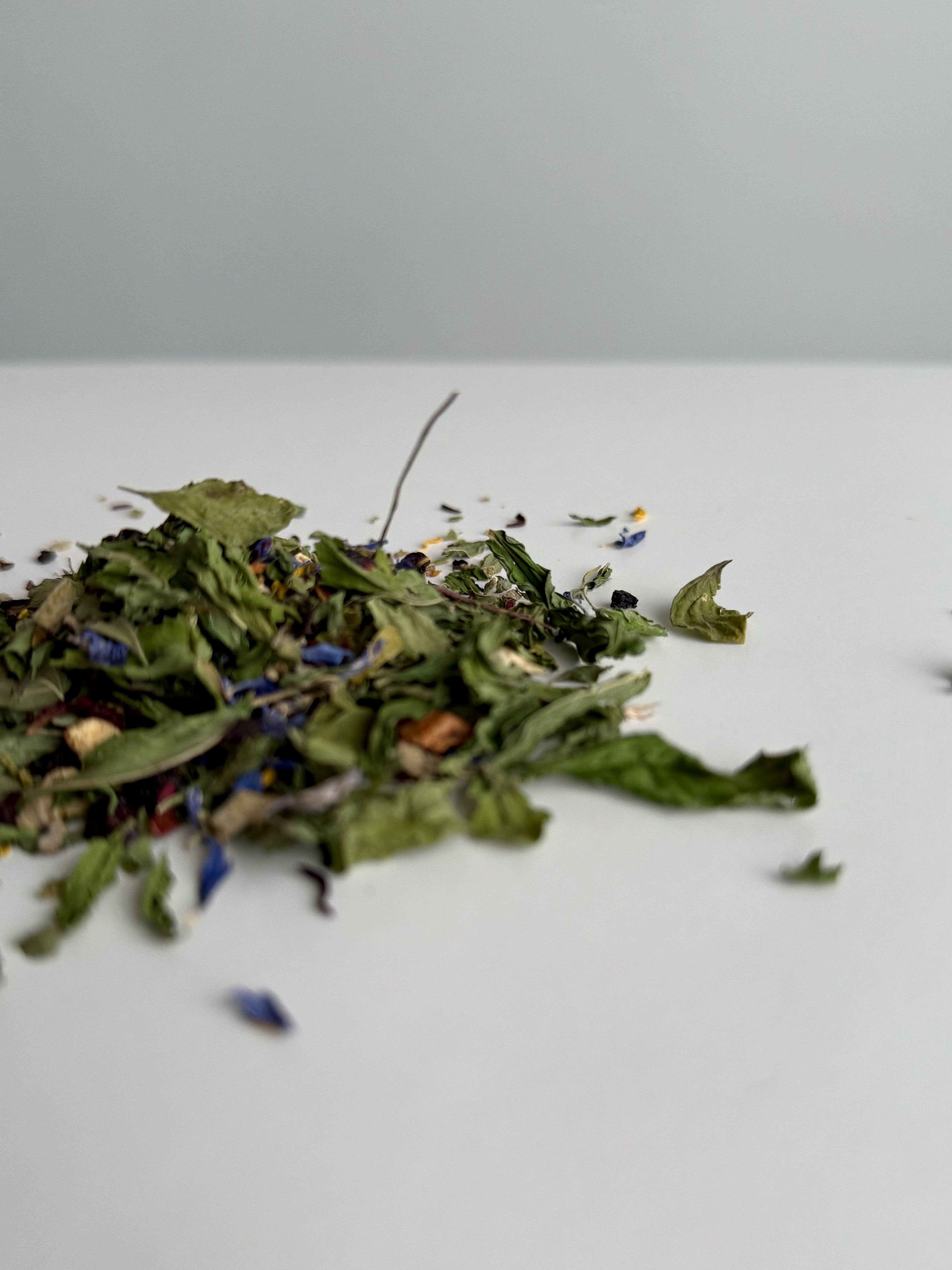 Avec Tourisme Bromont, nous avons imaginé une tisane qui évoque le plaisir de prendre soin de soi dans un cadre naturel. La menthe, la mélisse et la sauge offrent une base rafraîchissante et herbacée, rehaussée par le bleuet et le sureau. Un mélange vivifiant qui rappelle l’art de vivre bromontois.