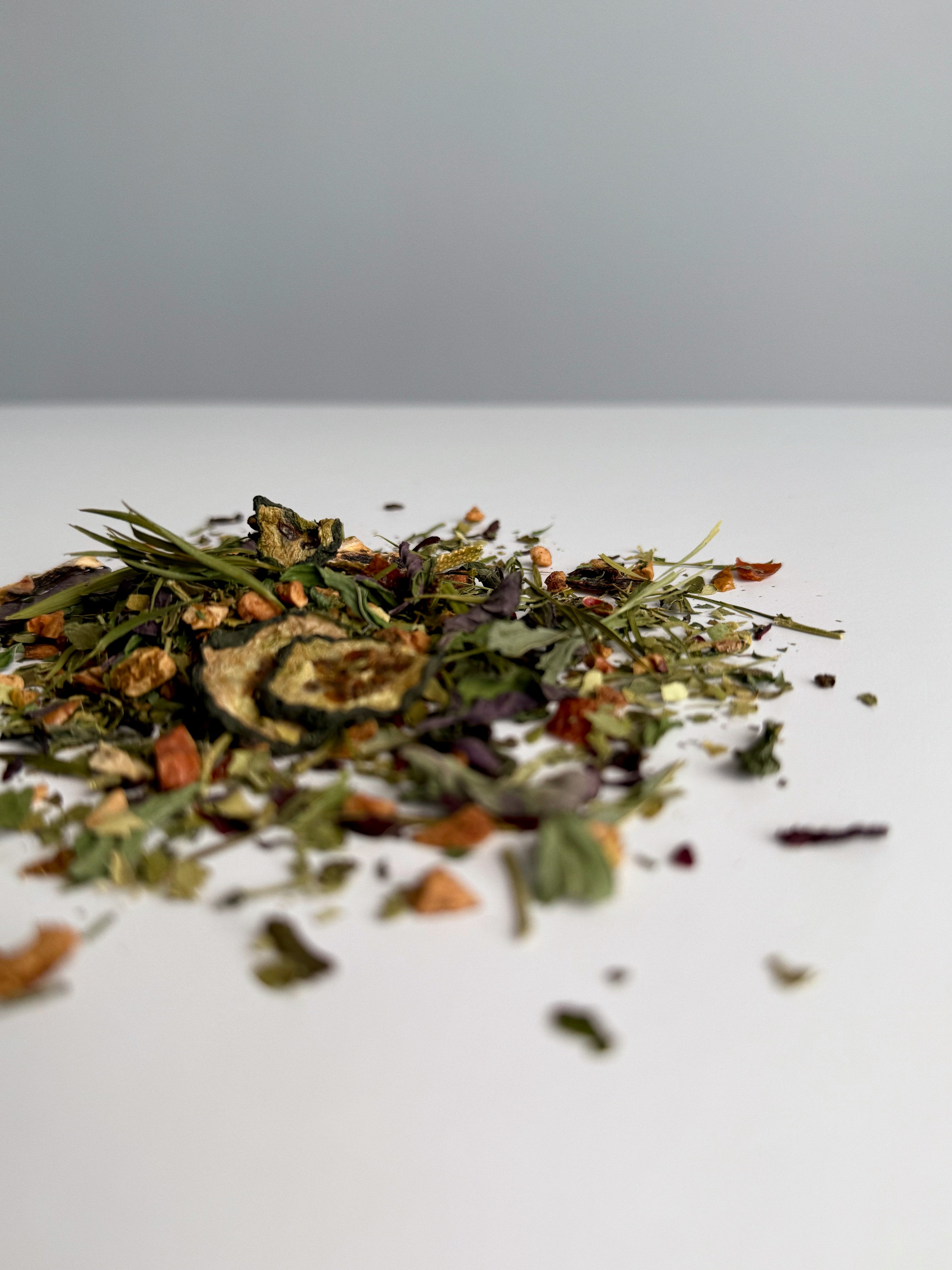 Créé avec le Pittstop Vélo Café, un lieu convivial où les cyclistes et les amateurs de café se retrouvent, ce mélange met en valeur la fraîcheur de la menthe verte et poivrée, relevée par la vivacité du concombre et de la lime. La feuille de bambou apporte une touche végétale délicate. Une tisane désaltérante et rafraîchissante, particulièrement savoureuse en version glacée.