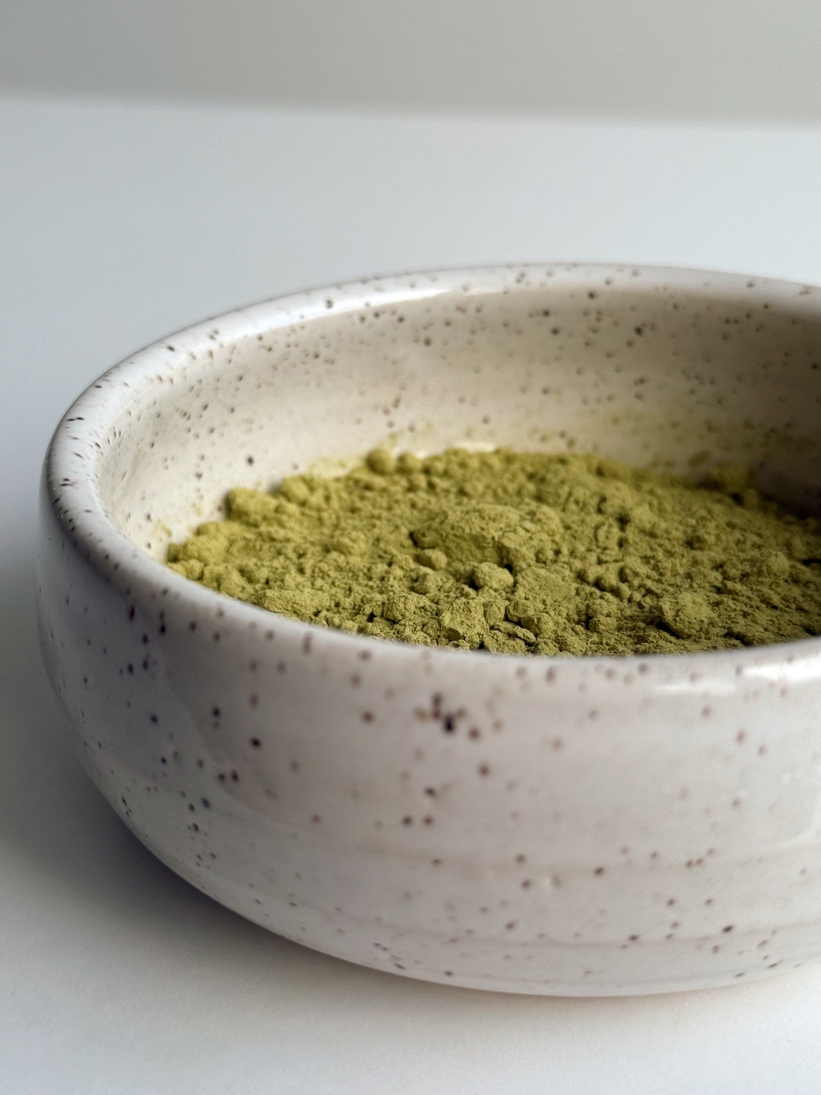 Fouetter 1 g de matcha avec un peu d’eau chaude jusqu’à obtention d’une mousse légère, puis ajouter de l’eau ou du lait selon le goût.