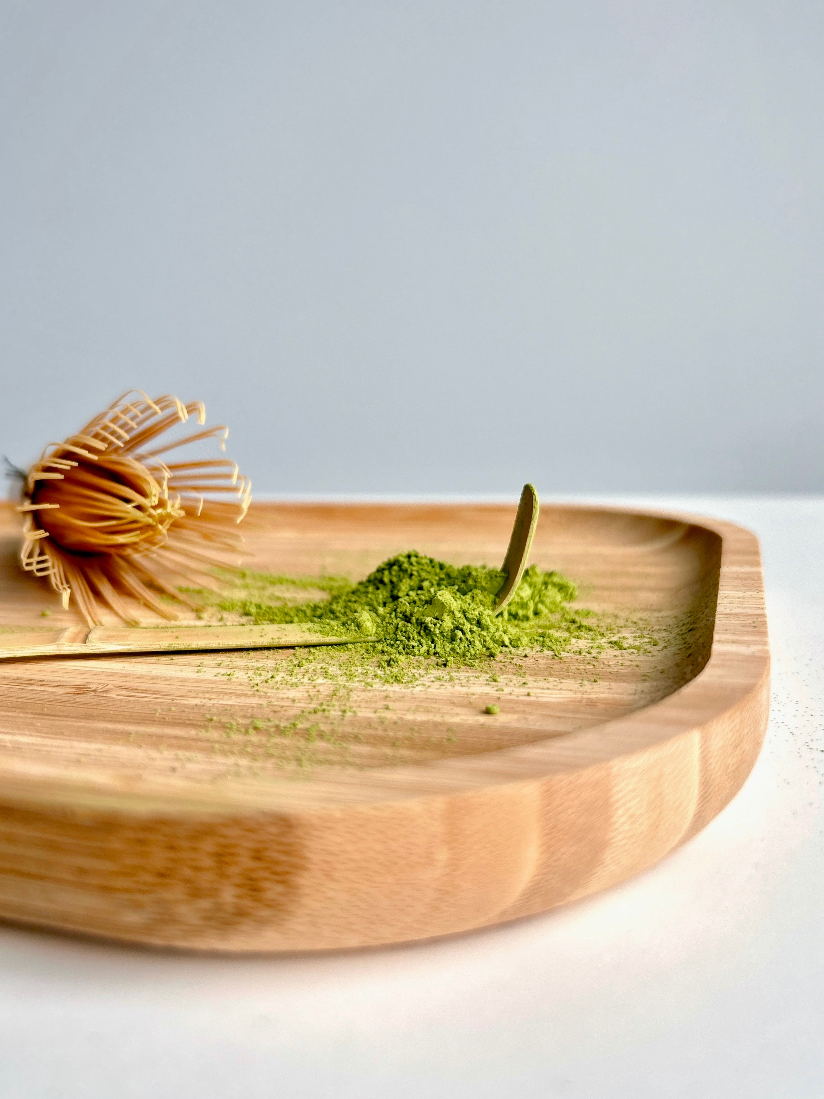 Fouetter 1 g de matcha avec un peu d’eau chaude jusqu’à obtention d’une mousse légère, puis ajouter de l’eau ou du lait selon le goût.