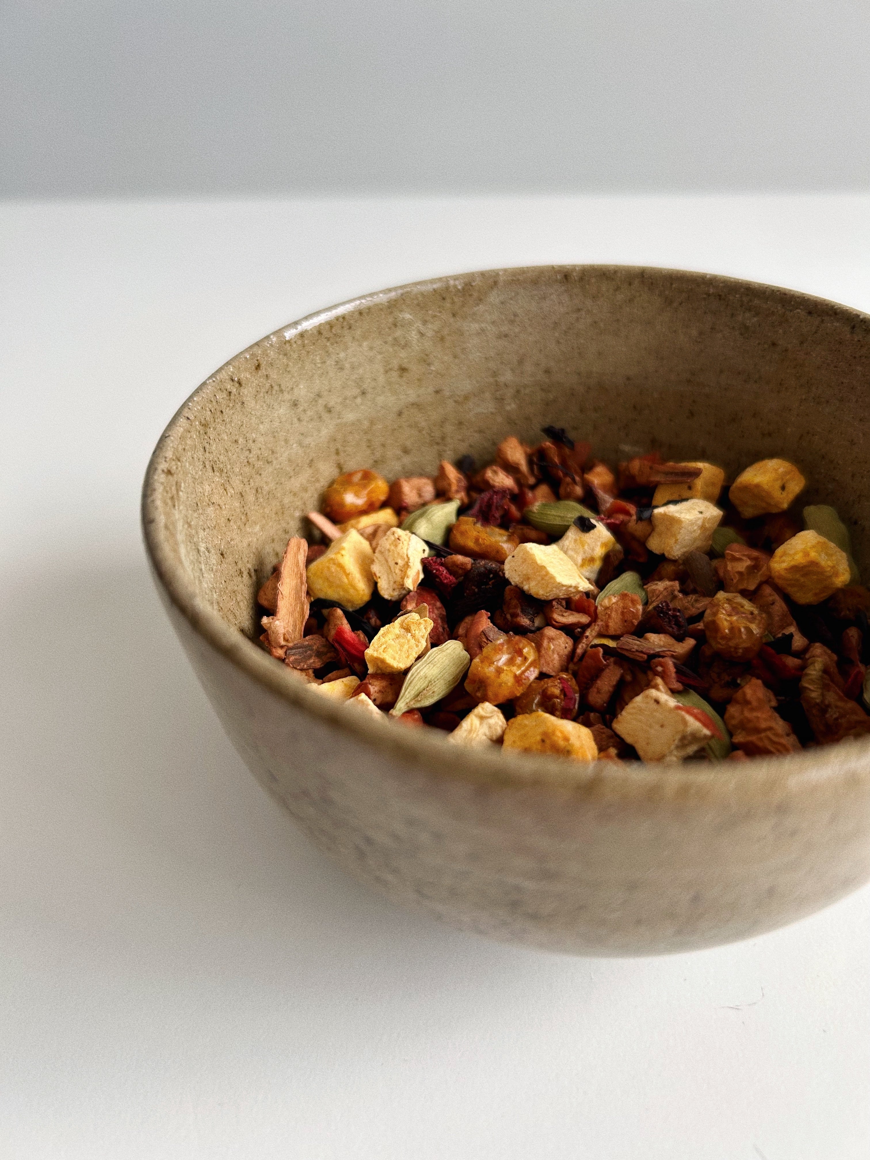 Infuser 1 c. à thé dans une tasse d’aru chaude 5 à 10 min.