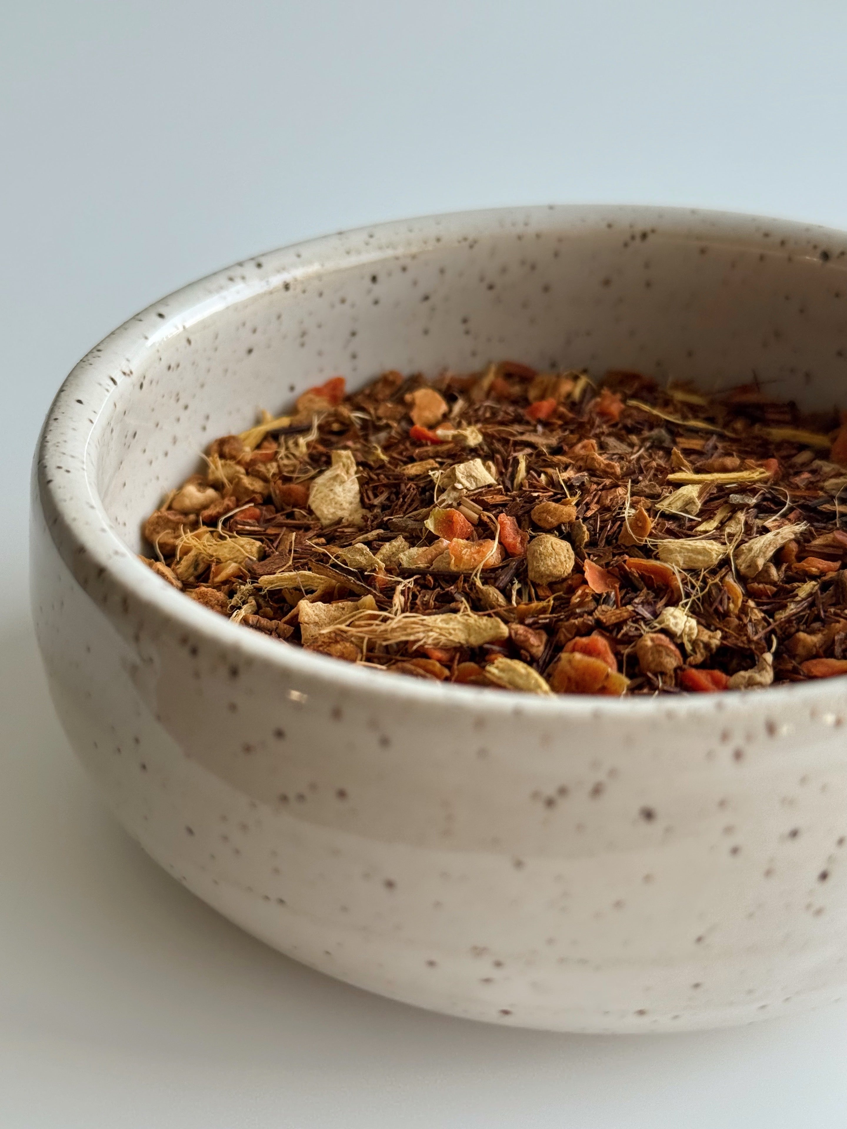 Un rooibos gourmand qui évoque le célèbre gâteau aux carottes, mais sans sucre ajouté. La rondeur du rooibos se marie aux notes épicées de la cannelle et du gingembre pour une infusion douce, réconfortante et gourmande à souhait.