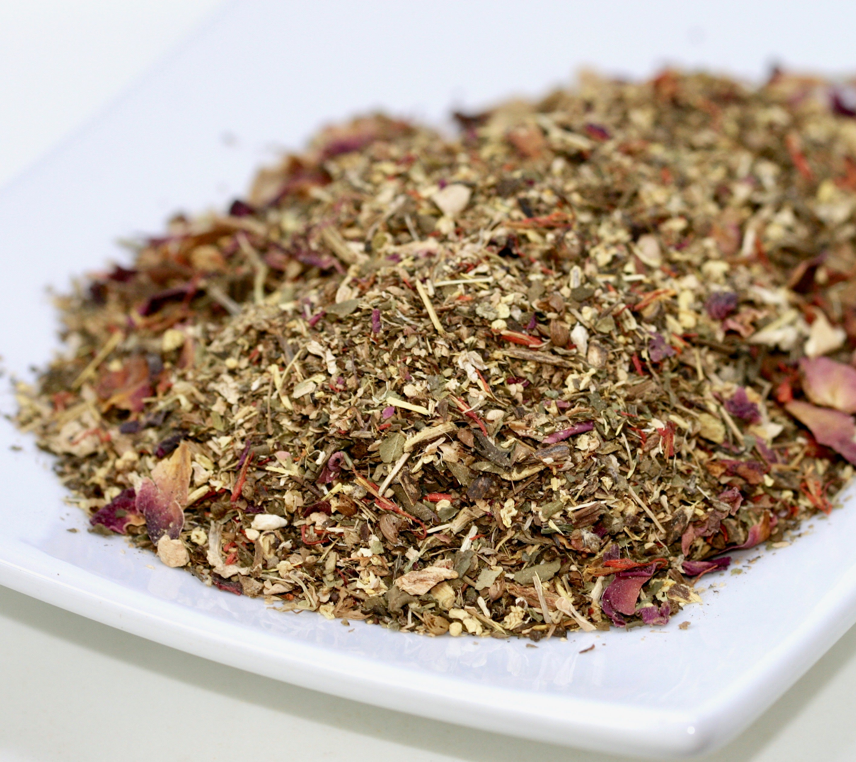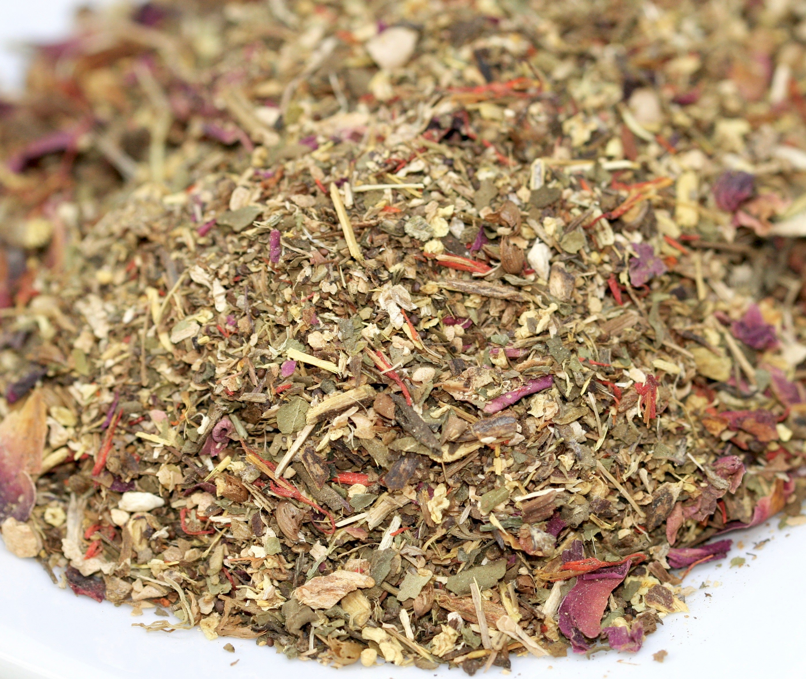 Ingrédients : Réglisse, gingembre, basilic sacré, feuilles de pissenlit, racine de bardane, pétales de roses, fleurs de sureau, fleurs de carthame, arômes naturels