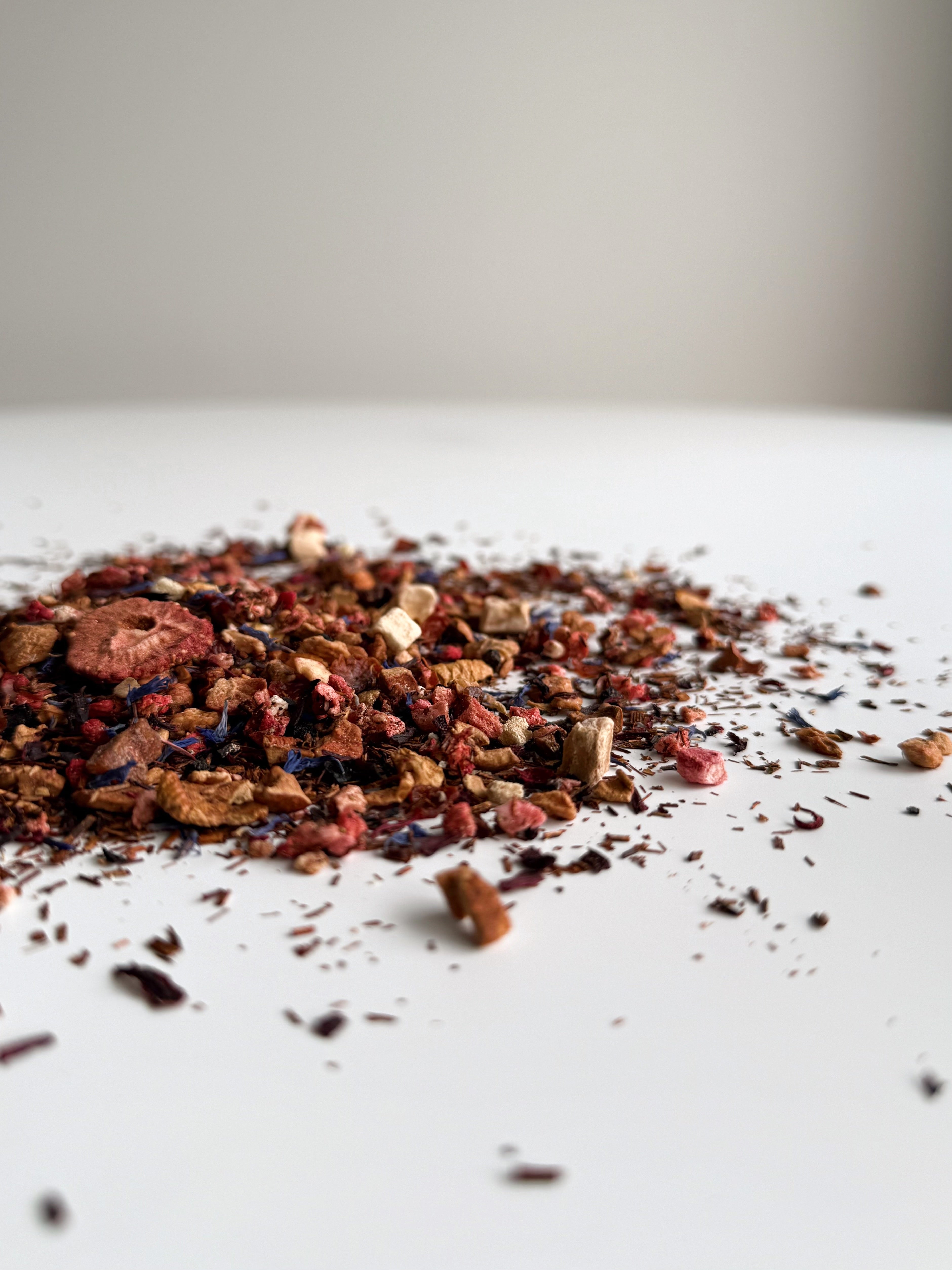 Créée en collaboration avec le Café 1792 à Bromont, cette infusion fusionne l’élégance du lieu, un café chaleureux dans une maison ancestrale offrant une ambiance confortable, terrasse et choix soignés de repas et pâtisseries à un mélange raffiné : rooibos, bergamote façon Earl Grey et fraise, délicieusement équilibré, parfait aussi en infusion glacée.